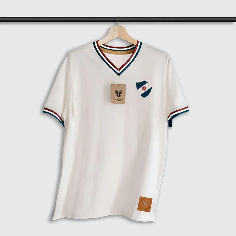 Esta remera retro premium, fabricada íntegramente en Uruguay, combina autenticidad y calidad superior. Confeccionada 100% en algodón de alta calidad, ofrece confort y durabilidad. Presenta un escudo bordado y un parche Football Town en la parte inferior derecha, detalles que resaltan su exclusividad. Ideal para quienes valoran un diseño exclusivo y representativo. Recomendamos lavar a máquina del revés para preservar sus características.